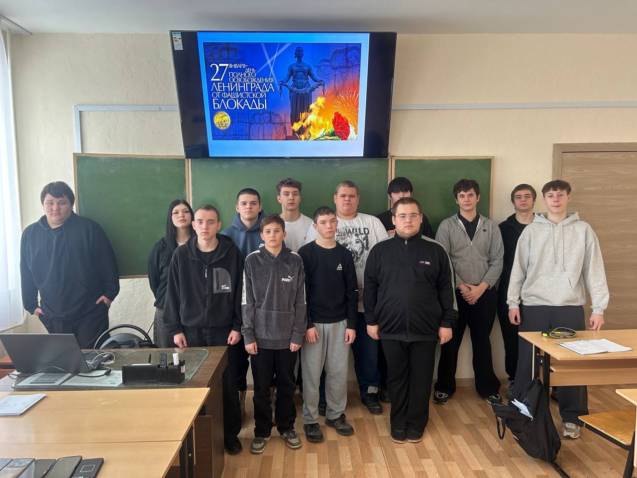27 января 2026 года активисты структурного подразделения «Движения Первых» ОГБПОУ «Рязанский колледж имени Героя Советского Союза Н.Н.Комарова» приняли участие в митинге, посвященному Дню полного освобождения Ленинграда от фашистской блокады.