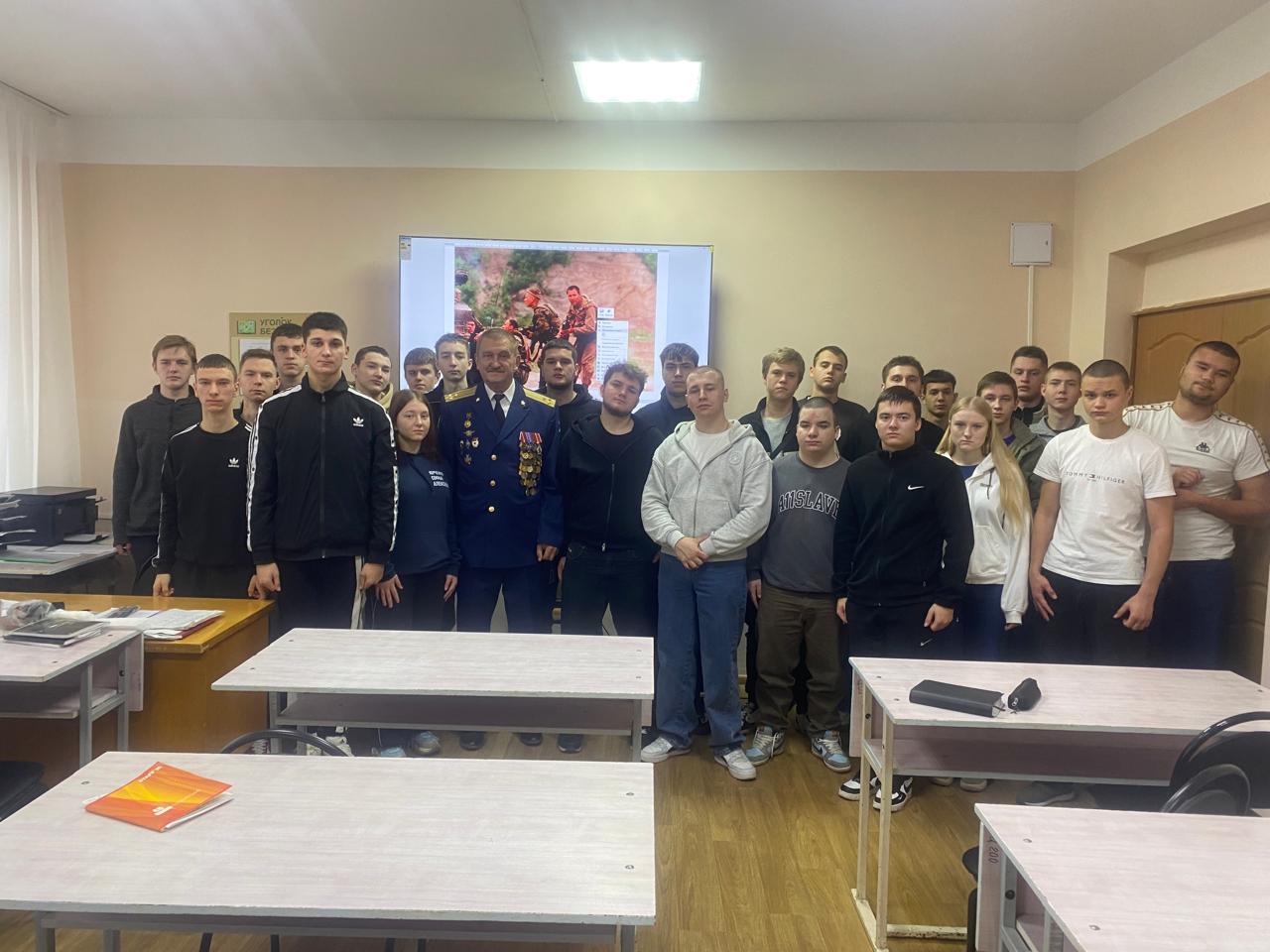17 ноября 2025 года преподаватель специальных дисциплин, полковник запаса ВДВ Вячеслав Васильевич Матыцин провел урок мужества «Есть память, которой не будет конца» для студентов 2 курса пожарно–спасательного отделения.