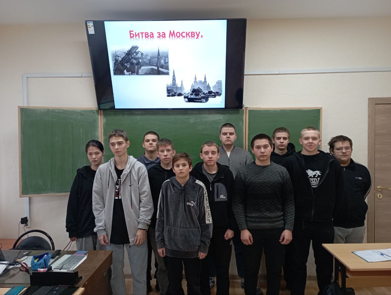 4 декабря 2025 года в структурном подразделении ОГБПОУ «Рязанский колледж имени Героя Советского Союза Н.Н.Комарова» состоялся информационный час, темой которого стала «Битва за Москву».