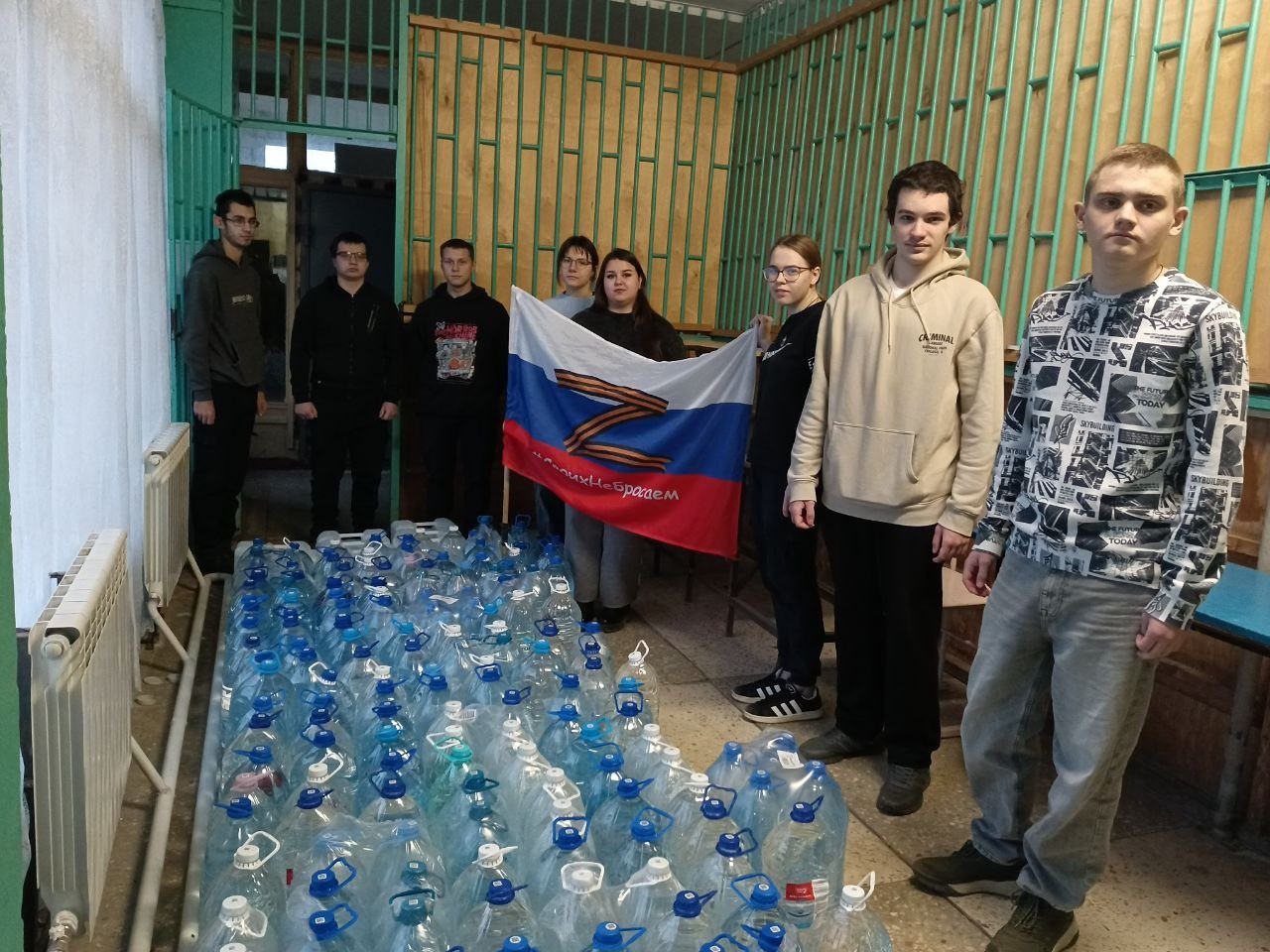 Студенты помогли собрать и упаковать питьевую воду, которая в ближайшее время отправится в Донецкую Народную Республику.