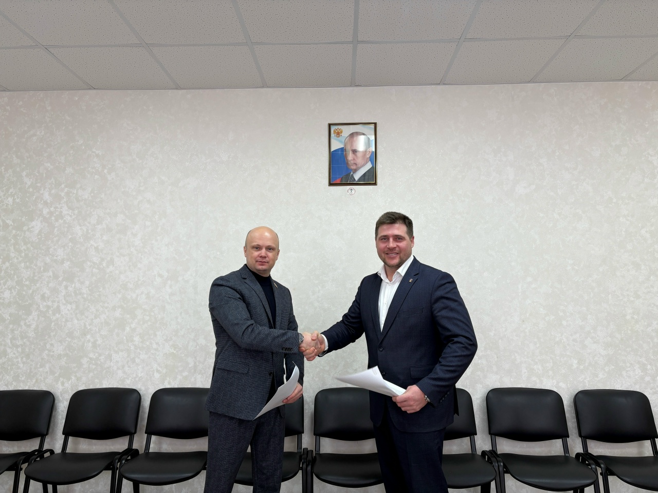 Свои подписи под документом поставили директор колледжа Андрей Сергеевич Епишин и руководитель Ассоциации ветеранов СВО Роман Евгеньевич Иголкин