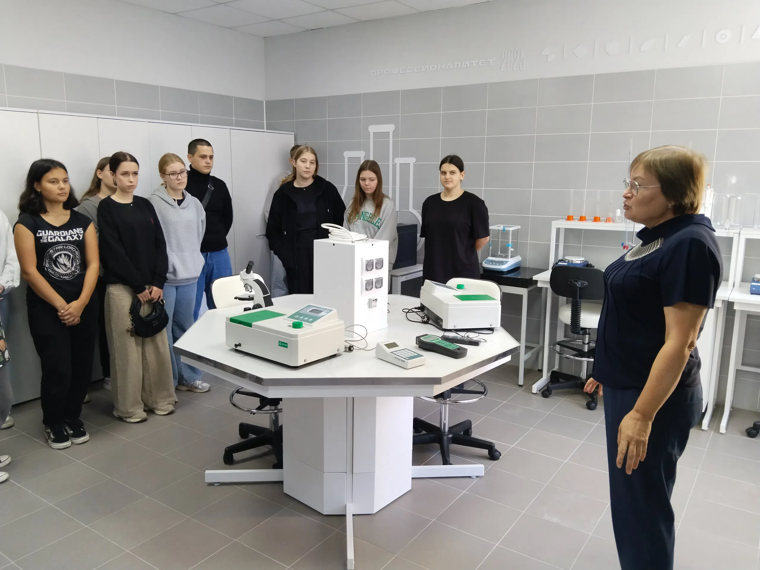 Вместе с преподавателем студенты посетили посетили учебно-производственные зоны экологической безопасности и химического анализа и узнали много полезной информации о возможностях будущей профессии.